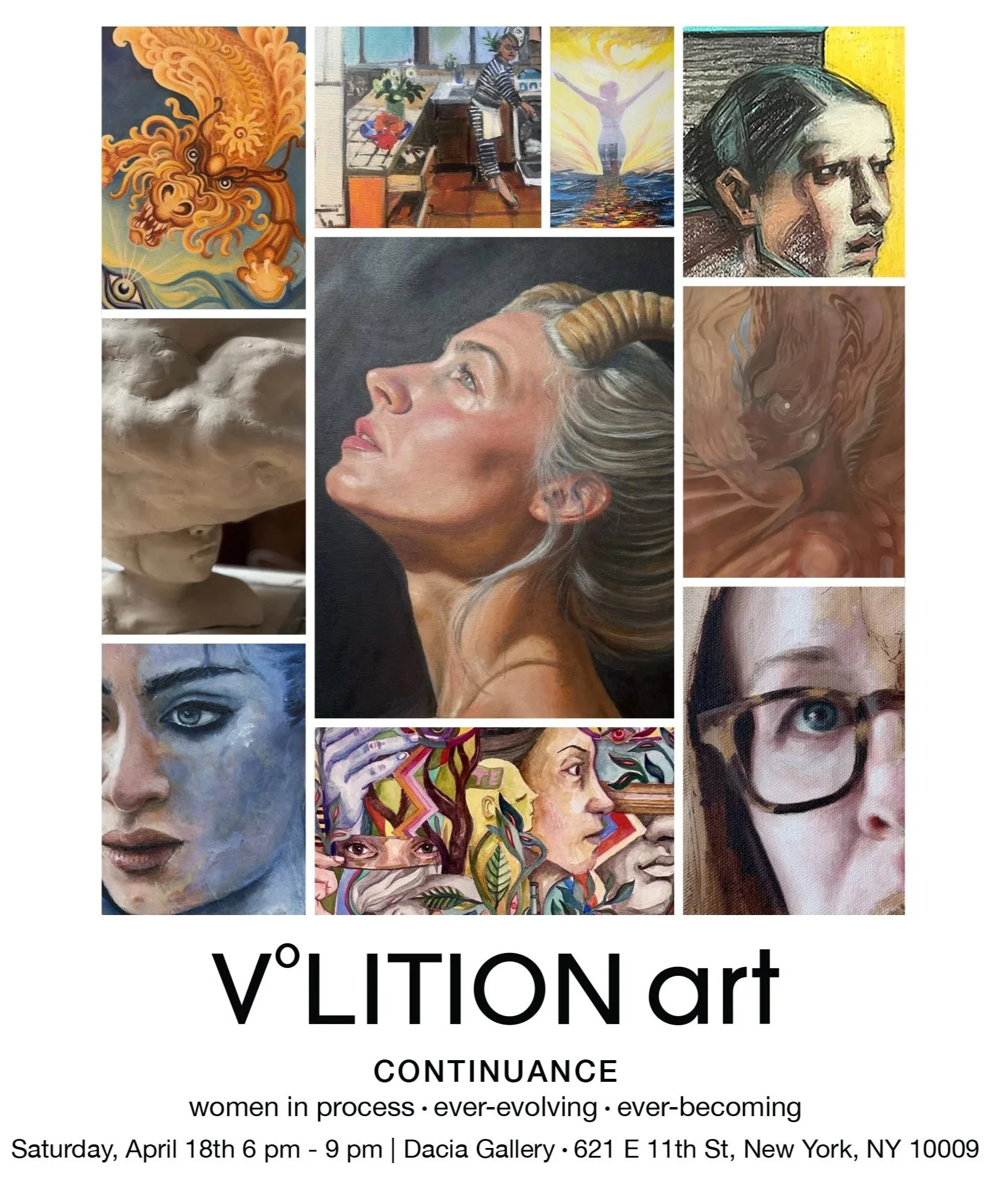 Presenting artists and poets creating works inspired by CONTINUANCE. The exhibition and launching of VOLITION art will be at Dacia Gallery, NYC. VOLITION art returns a decade after Expressions of Women Rising.